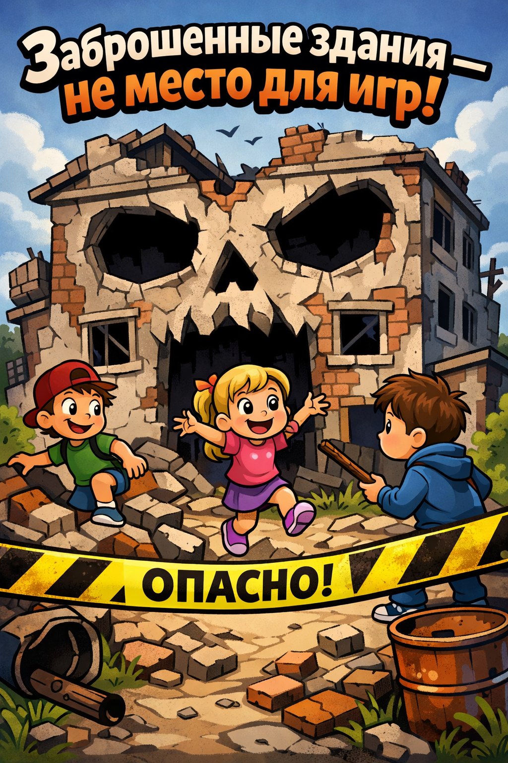 Недостроенные или разрушенные конструкции, вырытые котлованы, складированные стройматериалы могут привести к травмированию и гибели несовершеннолетних, поэтому нахождение детей таких объектах категорически запрещено!